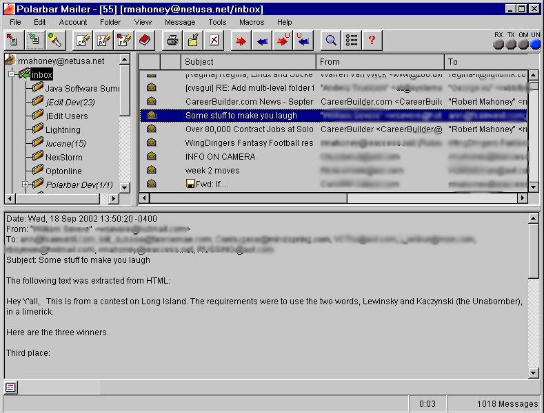 Here are some thumbnail image links to full size screenshots of Polarbar Mailer in action.